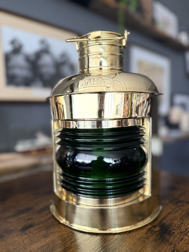 Große hochwertige Steuerbord-Lampe aus poliertem Messing.